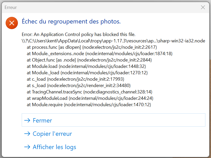 When I try to do this, an error message appears (see screenshot).